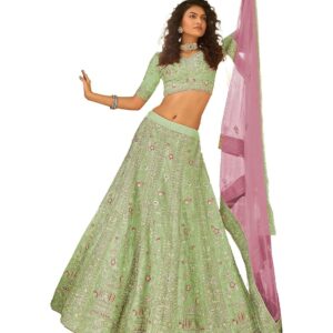 Women’s Stone And Sequins Work Pista Green Color A-Line Lehenga For Women