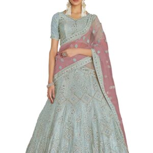 Women’s Soft Net Lehenga Choli With Dupatta (PINK_ZC7706_Unstitched)