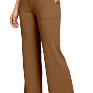 Women’s High Waisted Wide Leg Ribbed Knit Trousers with Pockets | Casual and Stretchy Pants | for Women