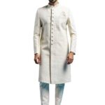 Men’s Georgette Sherwani Set – Georgette Allover Embroidered Sequence Sherwani And Pyjama Set