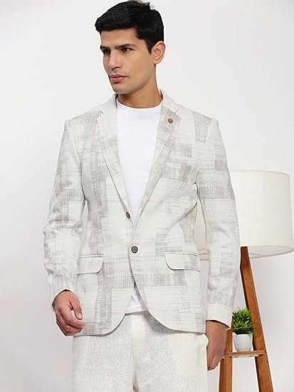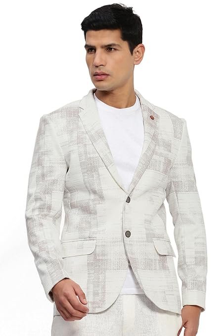 Men’s Off White Printed Single-Breasted Blazer-LBR-2468_OffWhite