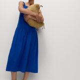 - This strappy swing dress is made from linen-rich fabric for a breezy feel. It’s cut in an easy regular cut, with a drop waist and a midi-length hem, creating a flattering silhouette. The slim straps are adjustable for a personalised fit. This versatile style is complete with a feminine scoop neckline and a discreet side zip closure. M&S Collection: easy-to-wear wardrobe staples that combine classic and contemporary styles.