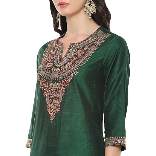 Women Poly Viscose Straight Embroidery Kurta Slim Pants Suit Set