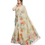 Women’s Chanderi Floral Digital Print Chandheri Saree with Unstitched Blouse Material