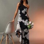 Women’s Floral One-Shoulder Cocktail Dress | Asymmetrical Hem with Lining | Adjustable & Removable Pads | Elegant Fit for Party, Wedding & Special Occasions
